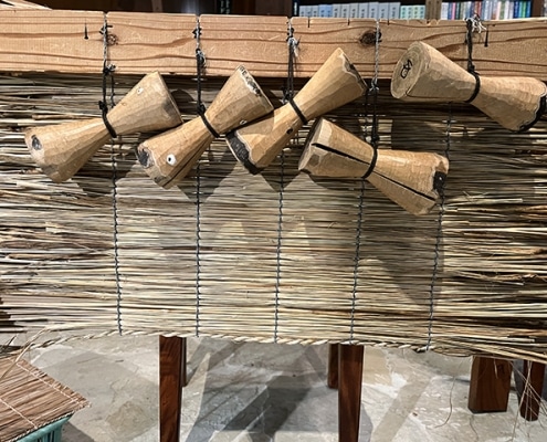 今日は、祭事行事で必要な道具、銅鑼を叩…